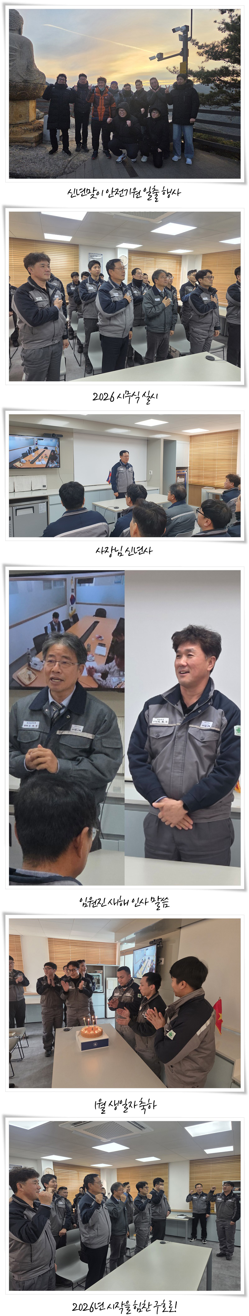 특히 서로를 배려하고 협력하여, 팀워크를 바탕으로 변화하는 환경 속에서도 흔들림 없이 성장해 나가자고 말씀하셨습니다. 아울러 임직원 모두의 건강과 안녕을 기원하시며, 올해는 각자가 꾸준한 자기계발을 통해 업무 전문성을 한 단계 높이고, 일의 의미와 성장의 보람을 크게 느낄 수 있는 한 해가 되기를 바란다고 당부하셨습니다.
